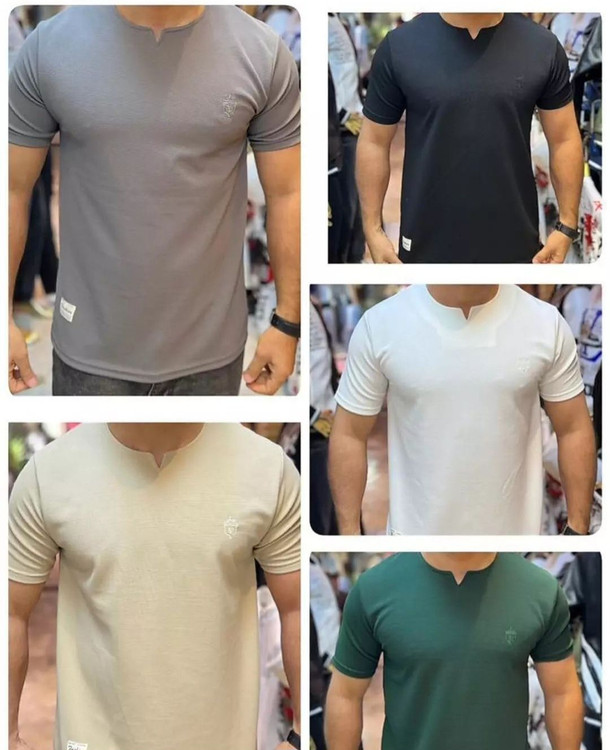 تیشرت بیسکویتی یقه کوبایی مردانه